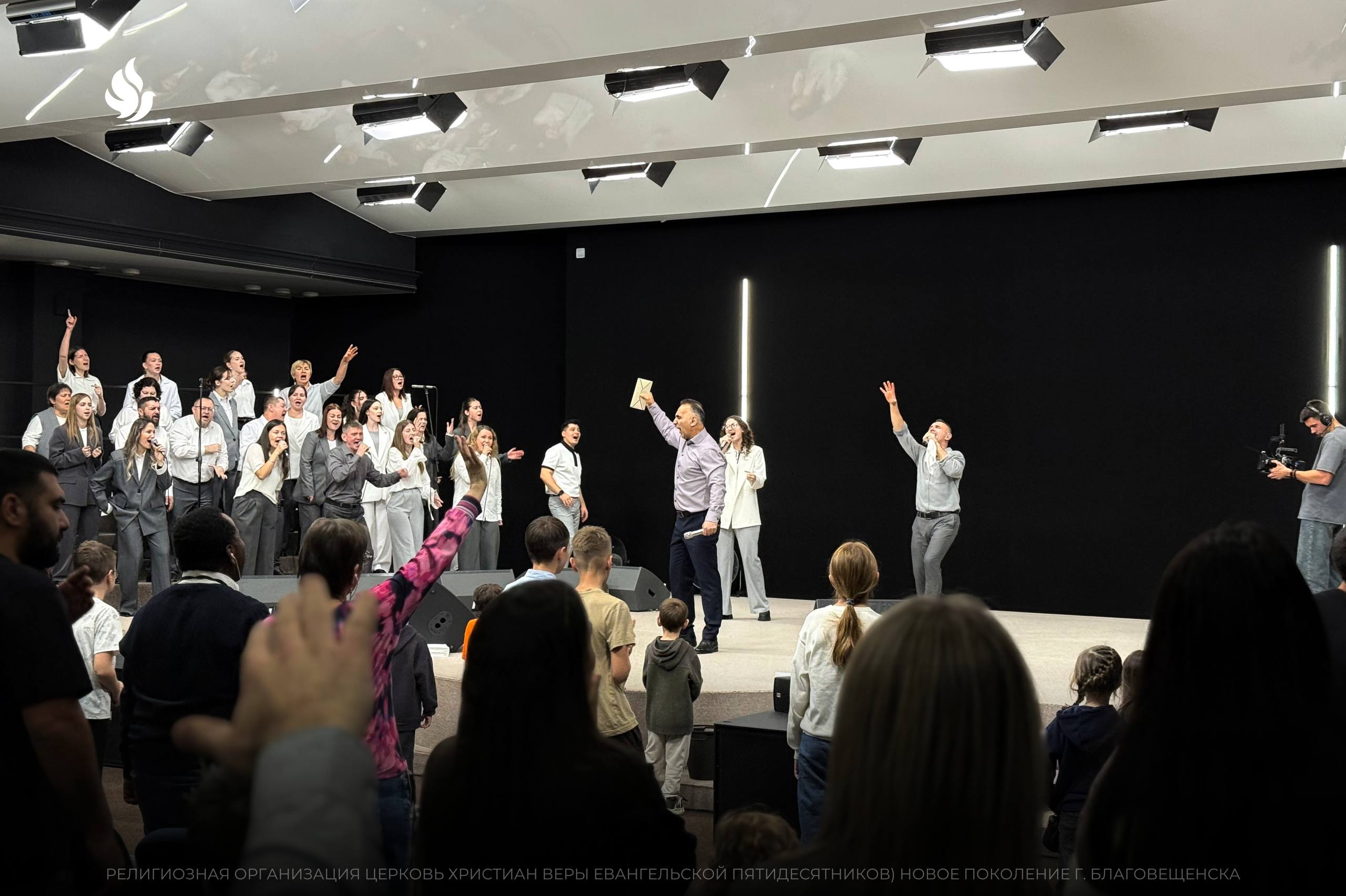 Вечер открылся музыкальным выступлением команды прославления церкви, которая создала атмосферу яркого поклонения Богу.